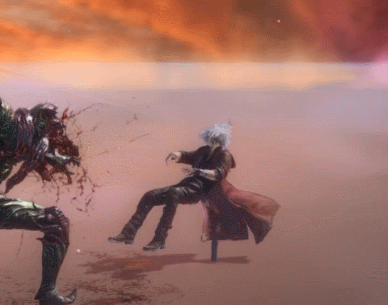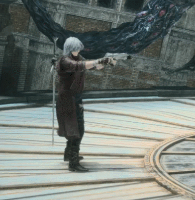 Dante shoots his shotgun behind him, not even looking where he’s firing. This is based on the grounded Backslide move, but it works perfectly for this situation. Just pretend he’s in the air.