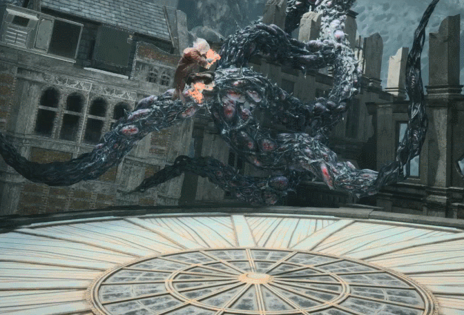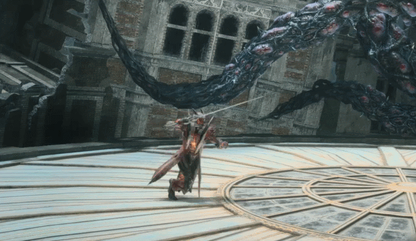 Dante whips his enemy behind him and tosses the rose from Lucifer in their direction. It explodes, knocking them away with great force.