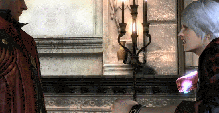 | Grab | Dante beratingly holds his enemy in place with just the tips of his fingers, showing how little strength he needs to exert to hold the enemy back.