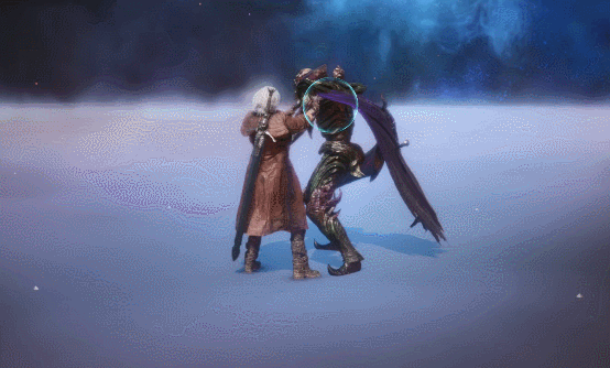 Dante performs Real Impact. A strong punch with a long windup and devastating impact, rocketing Dante and his foe into the air.