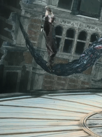 | Edge Attack | Dante does a somersault over the edge while shooting Ivory.