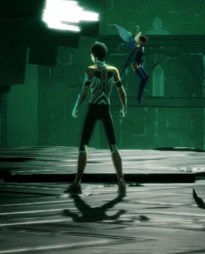 Demi-fiend leaps from the ground. His double jump has him spin in the fetal position, similar to the SMT Nocturne commercial.